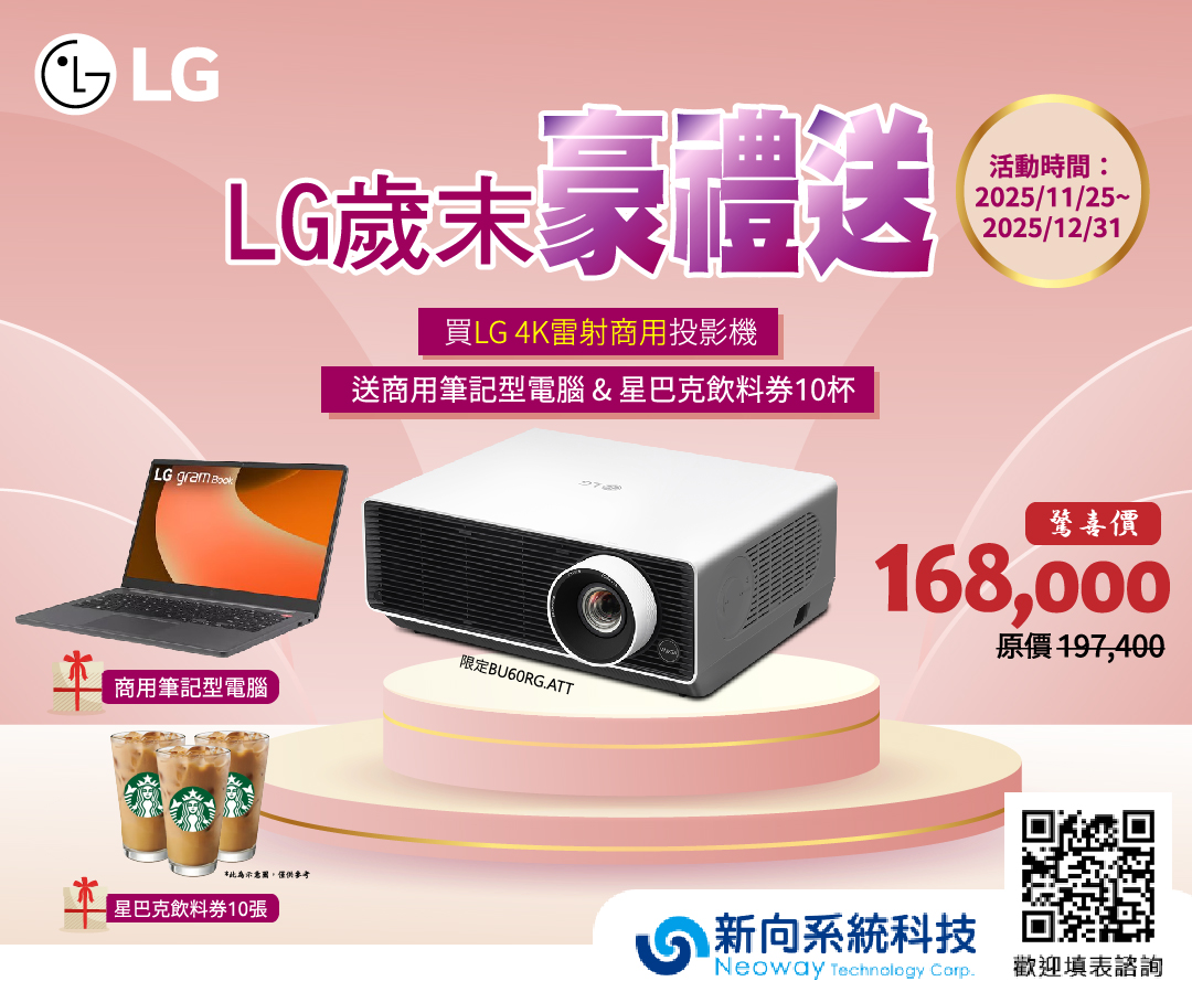 ●本活動期間 LG 商用投影機(BU60RG.ATT)購買日為 2025/11/25-2025/12/31。